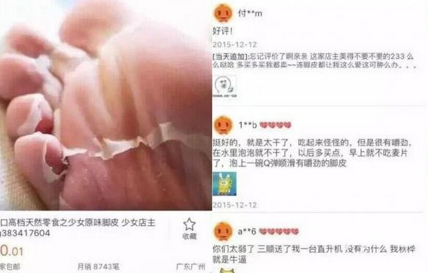 “少女原味脚皮”淘宝热销 买家表示“相当有嚼劲”